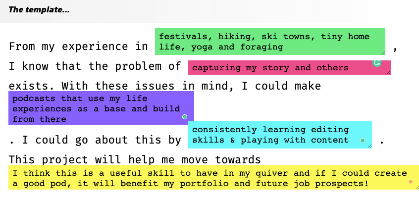 What has tripped me up so far is getting sucked into the comparative vortex of twitter and the like O’sphere. Pretty redundant in a project base class where everyone is on vastly different paths. In reflection I have hit the steps I need to at this point of the project in regards to my own parameters and adhering to the weekly material. I have worked through a number of project statements to process and anchor my thoughts and potentially assess the idea of an audience beyond friends and family and of course myself. But currently my focus looks like this as I’m in the learning process of podcast creation.