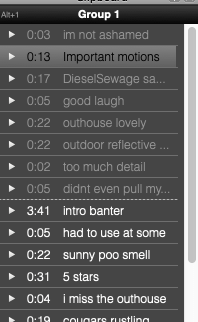 I opted to start with a ‘montage teaser’ as I believe it instantly anchors the listener in the outhouse. I played around with feedback from both Steiner and Jennifer in factoring in what to omit and how to form my structure and blended this with my own instincts.