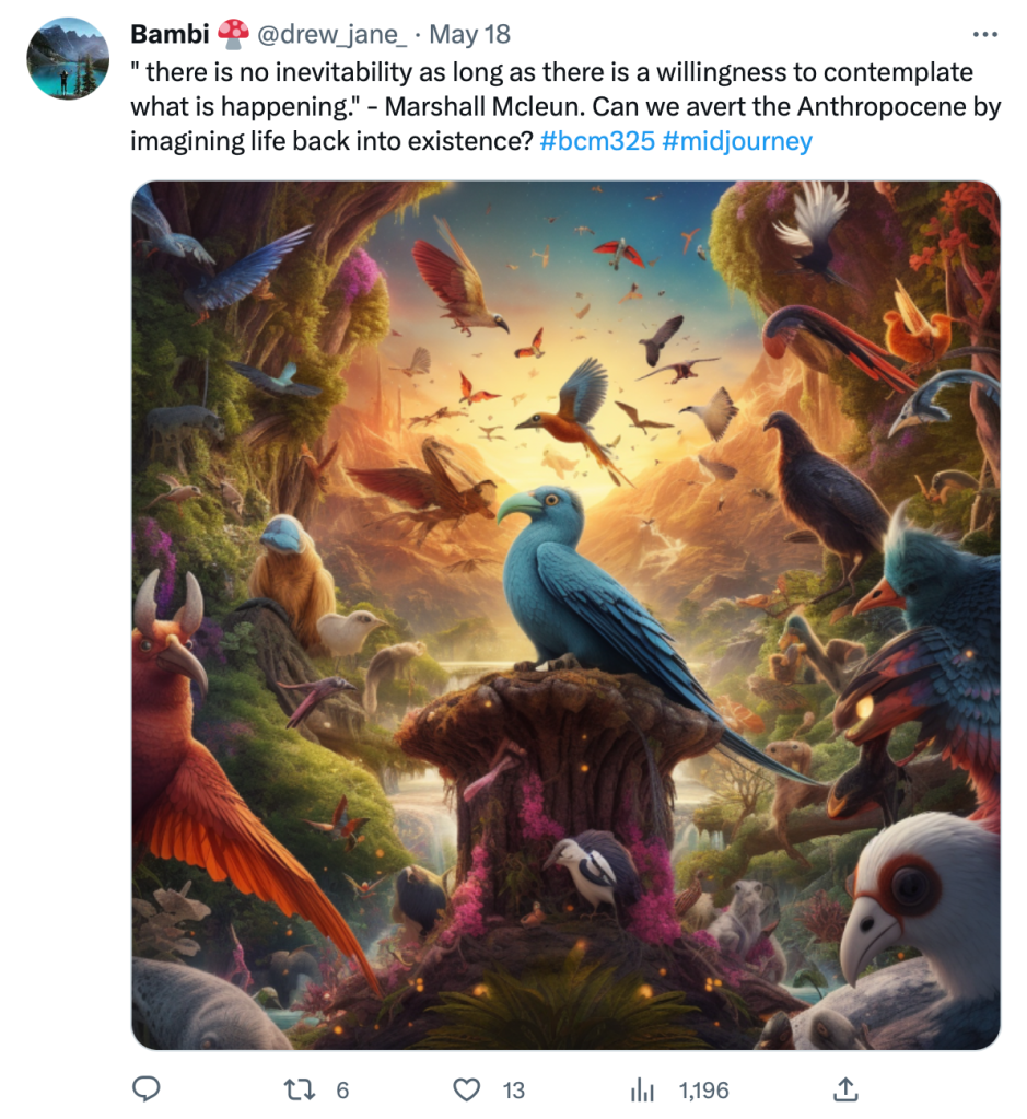 How do the industrial, digital and information era revolutions impact and inform future predictions? We once again got spicy on Twitter with our weekly viewings of media that challenged our interconnectedness as a species and the ways in which we prognosticate about our vision of the future in an increasingly A.I saturated landscape. Knowledge of the Anthropocene has become an audible hum in my cortex and a new lens in which to dissect the pop culture that inherently steers our global narratives. The following is a mashup of my tweets brought to you in part by Midjourney and ChatGPT which was a delightfully intriguing dance between these tools, the observer and myself.